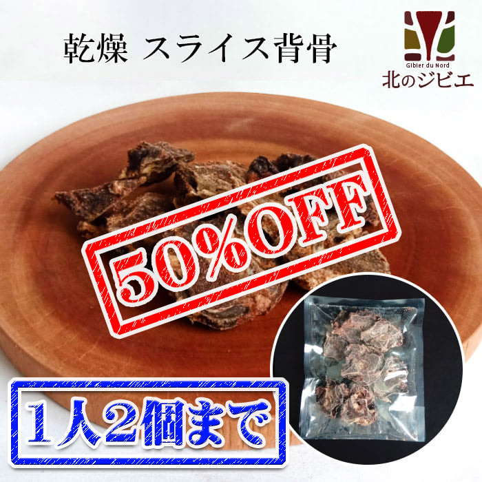 【早い者勝ち、半額!ペット用 えぞ鹿乾燥骨 スライス背骨 100g [dry-s-sebone-ss]