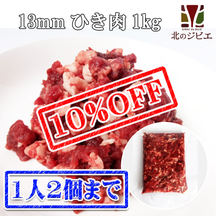 【先着/数量限定】鹿肉 13mmひき肉 1kgパック 脂多め [hiki-13mm-ss]