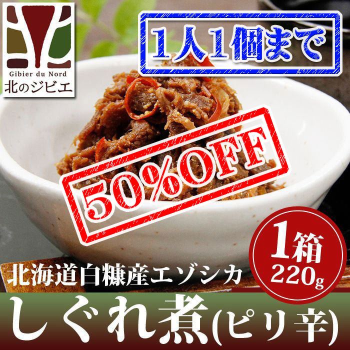 【早い者勝ち、半額!】鹿肉 しぐれ煮/ピリ辛味 220g【ネコポス送料無料】[レトルト商品] [shigure-piri220-ss]
