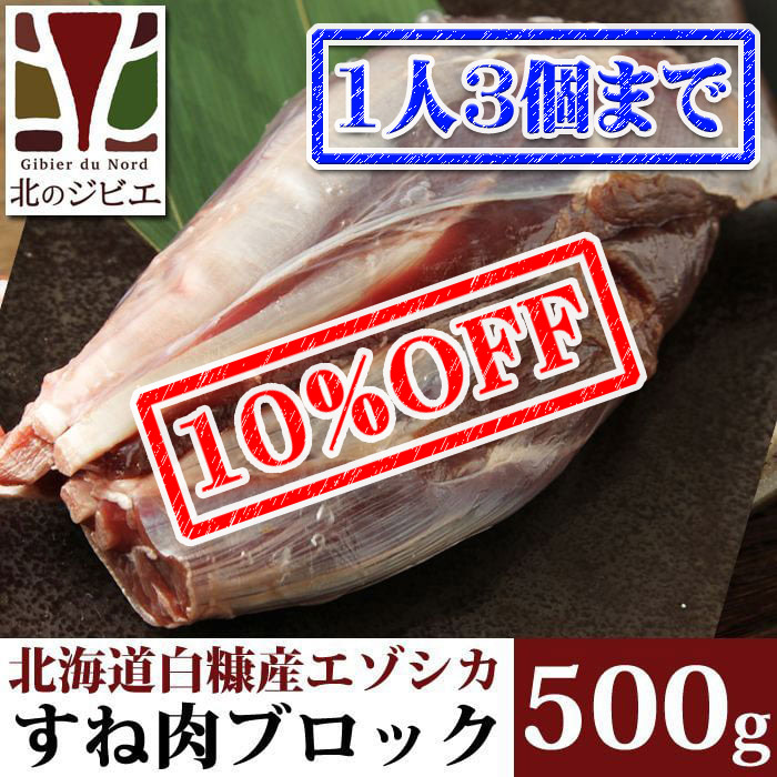【先着/数量限定】鹿肉 すね肉 ブロック 500g 北のジビエ直販:北海道エゾシカ [sune-b-500-ss]