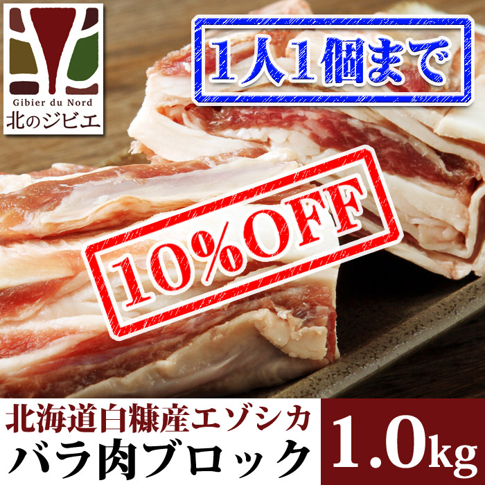 【先着/数量限定】鹿肉 バラ肉 ブロック 1kg 北のジビエ直販:北海道エゾシカ