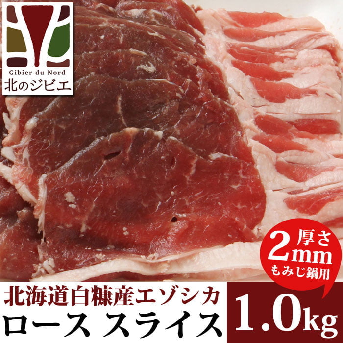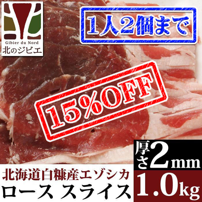 【先着/数量限定】鹿肉 ロース肉 スライス 2mm 1kg(500g×2パック) 北のジビエ直販:北海道エゾシカ [rosu-s-2mm-1kg-ss]