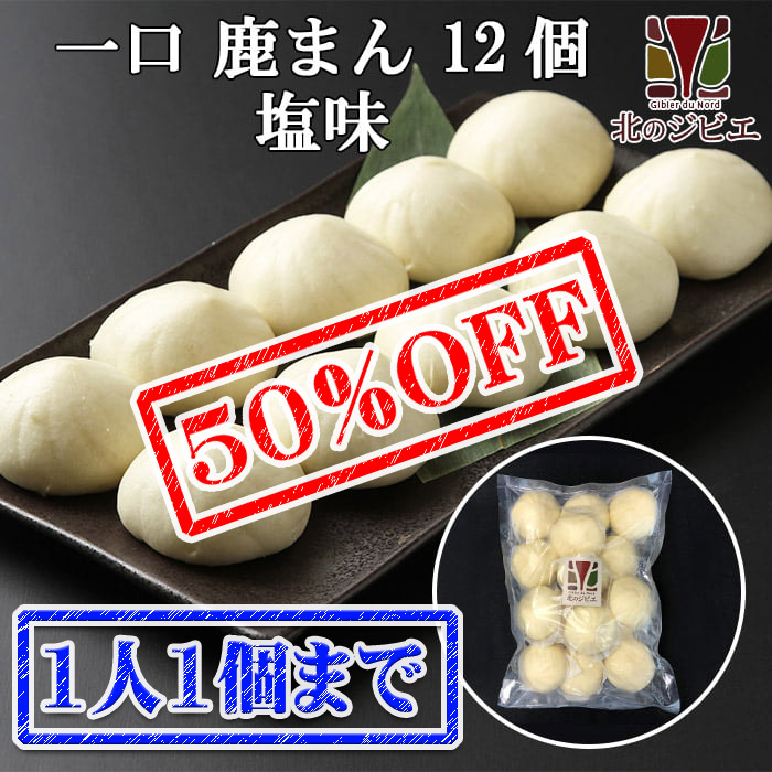 【早い者勝ち、半額!】鹿肉 一口しかまん 塩味 12個入り(鹿肉入りミニ肉まん) [mini-shikaman-plane-ss]